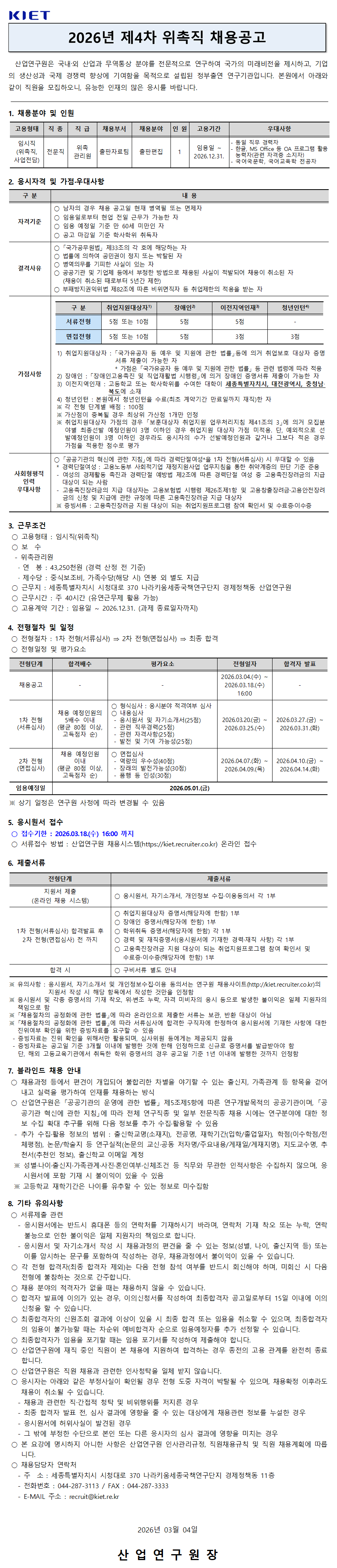 산업연구원에서 함께 일할 인재 채용공고