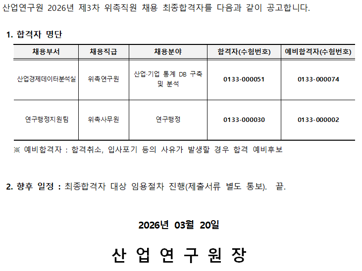 2026년 제3차 위촉직 채용 2차 전형(면접심사) 합격자 공고