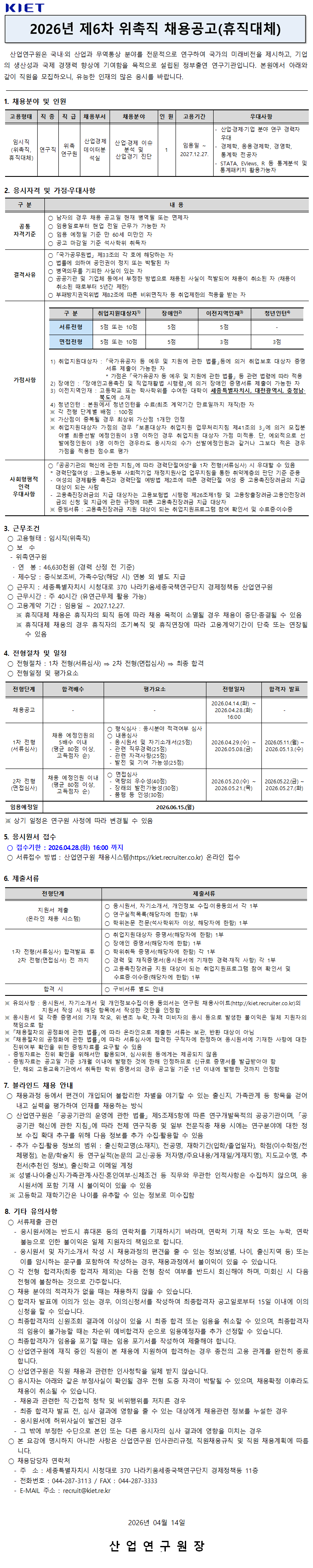 2026년 제6차 위촉직원 채용공고(휴직대체)