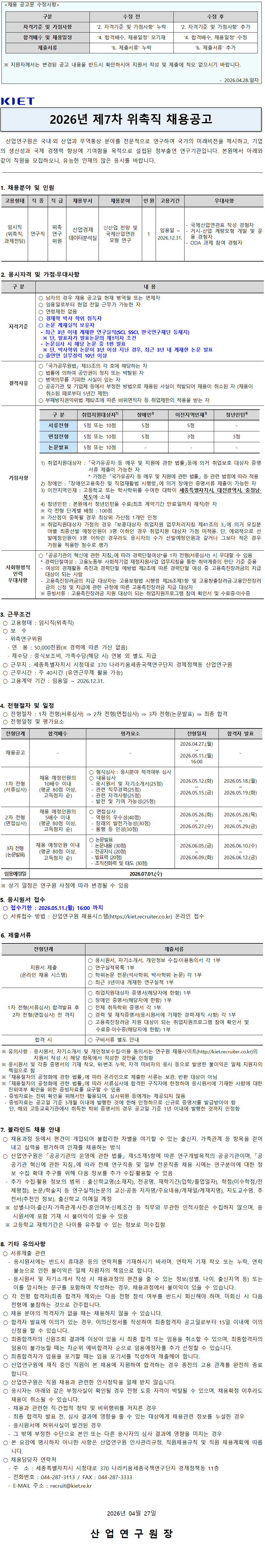산업연구원에서 함께 일할 인재 채용공고
