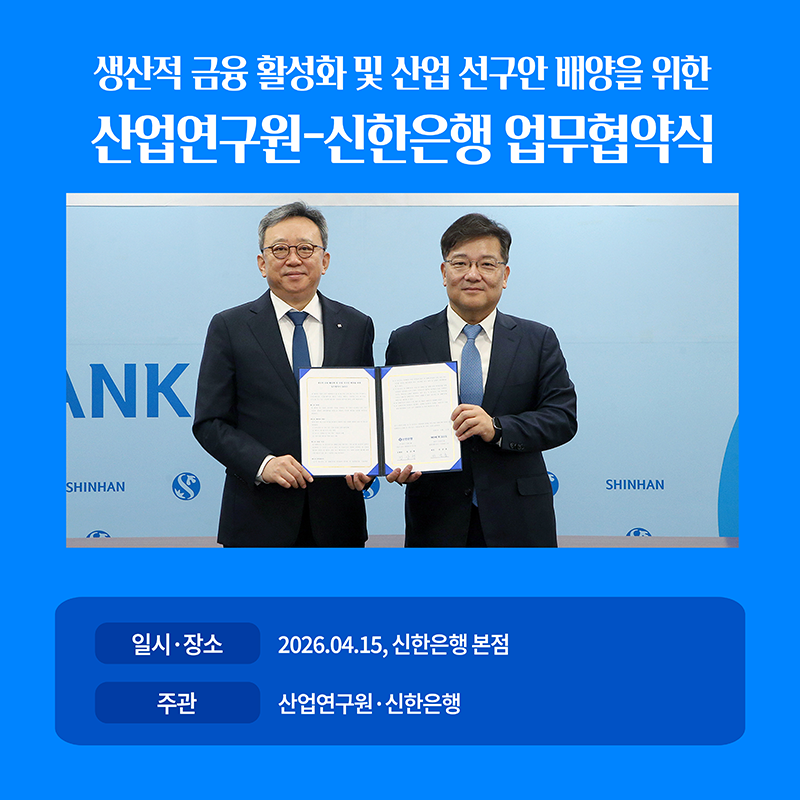 생산적 금융 활성화 및 산업 선구안 배양을 위한 산업연구원-신한은행 업무협약식 2026-04-15