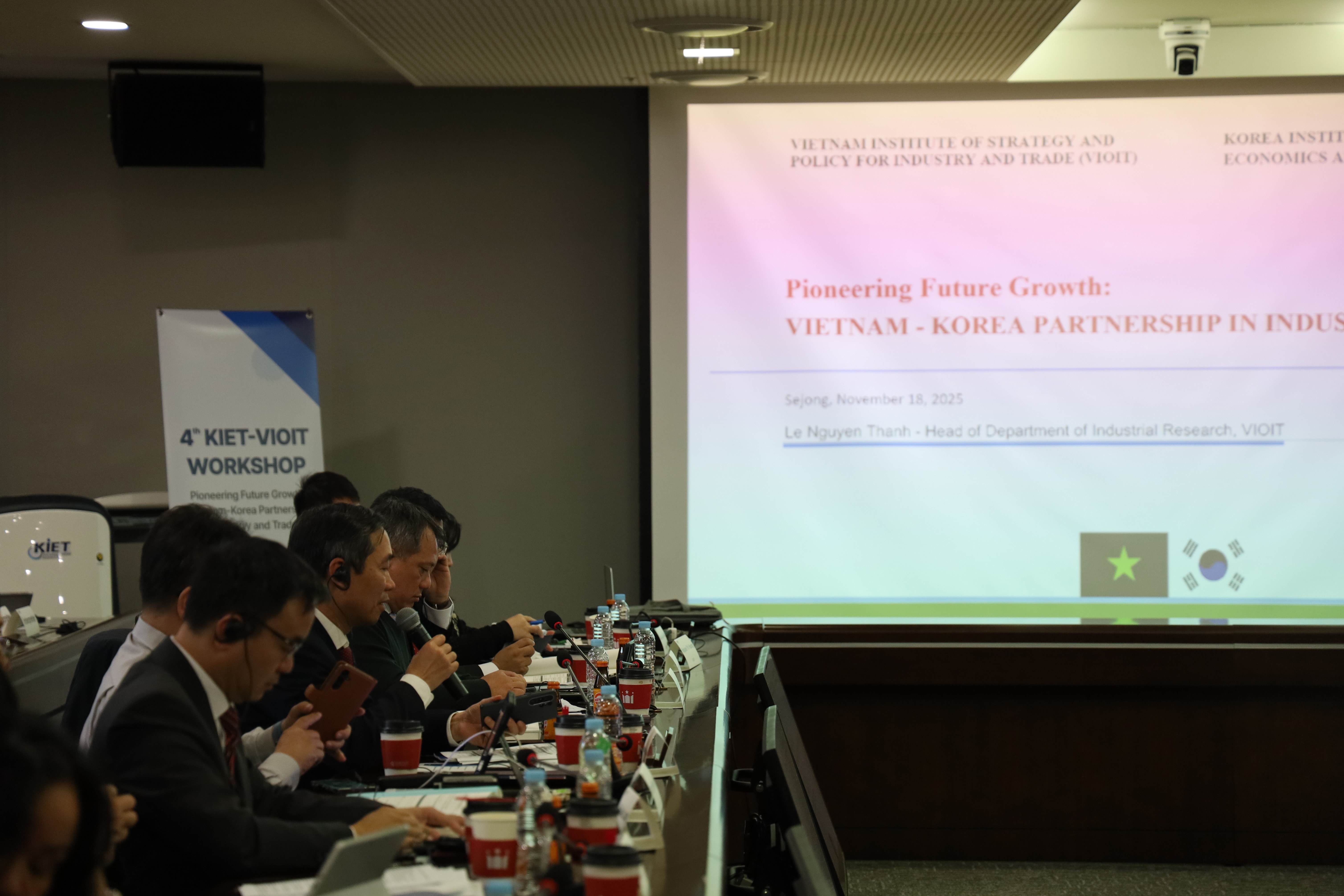 산업연구원(KIET)는 2022년 베트남 산업무역정책전략연구원(VIOIT)과 체결한 MOU에 따라 11월 18일 한국 세종에서 제4차 공동워크숍을 개최했다. 이번 워크숍은 “Pioneering Future Growth: Vietnam–Korea Partnership in Industry and Trade”를 주제로 양국 산업·무역 분야의 협력 방향을 논의하는 자리로 마련됐다.