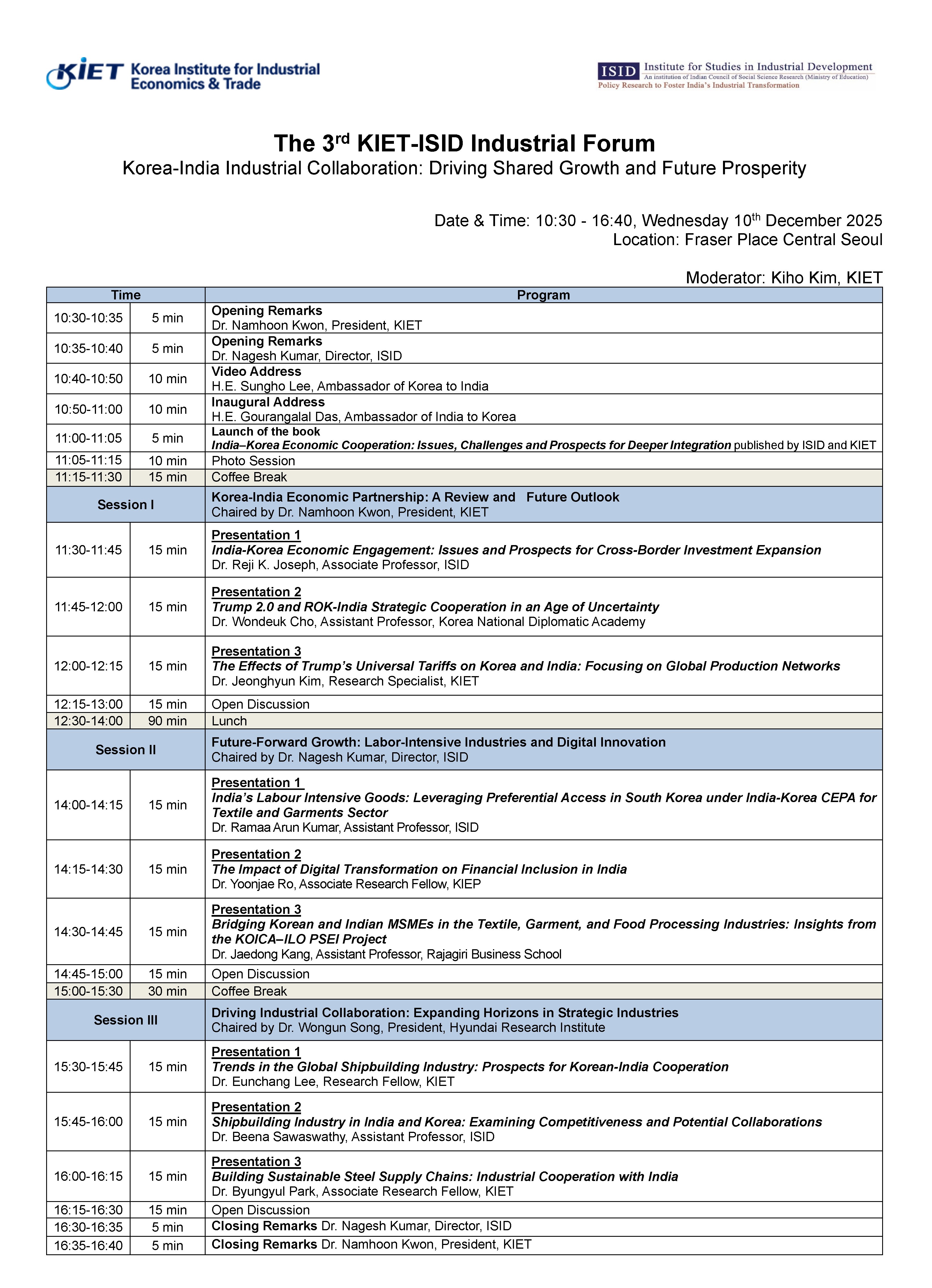 산업연구원(KIET), 인도 산업개발연구원(ISID)